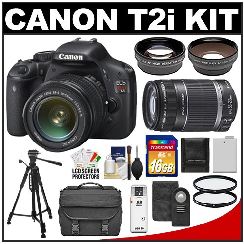 !9#:Canon EOS Rebel T2i Digital SLR Camera Body & EF-S 18-55mm IS Lens (Black) with 55-250mm IS Lens + 16GB Card + 2x Telephoto & .45 Wide-angle Lens + (2) Filters + Battery + Tripod Kit